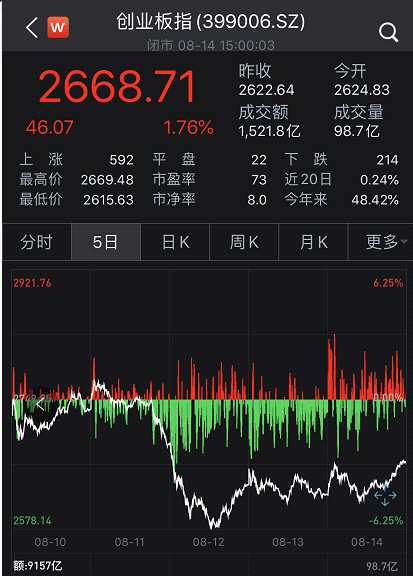 而此前陰跌了一周的創(chuàng)業(yè)板指也終于紅了!收漲1.76%報(bào)2668.71點(diǎn),本周累計(jì)下跌2.95%。