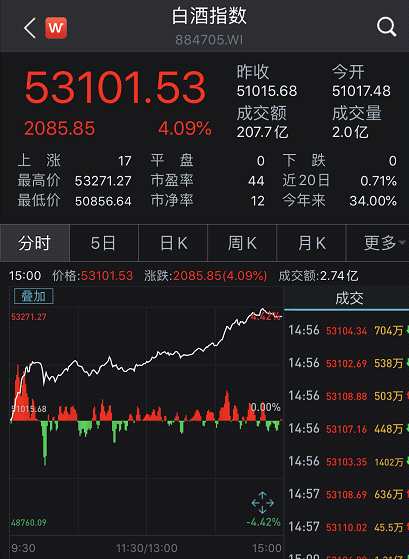 白酒概念也在午后發(fā)力,收漲4.09%。