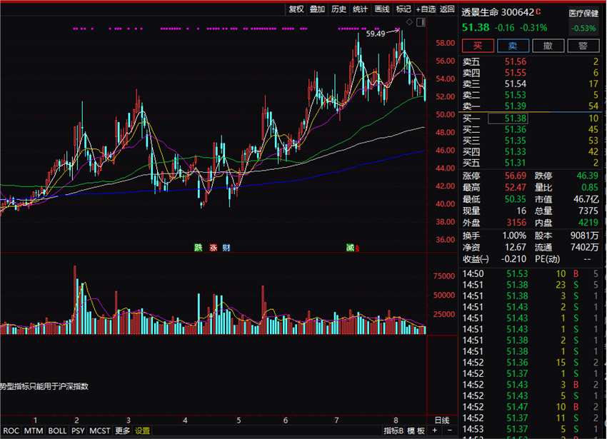 8月21日,透景生命微跌0.31%,股價(jià)報(bào)51.38元,股票總市值為46.7億元。作為體外診斷股,雖然也有新冠檢測(cè)概念,但透景生命今年以來(lái)股價(jià)漲幅為26%,遠(yuǎn)低于熱門(mén)醫(yī)藥生物股。
