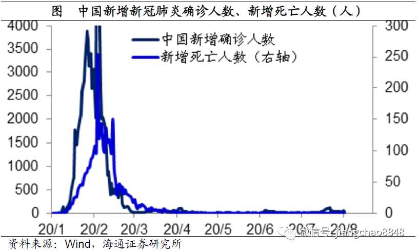 無論是從新增感染新冠肺炎的人數(shù)、還是新增死于新冠肺炎的人數(shù),中國都是在2月份達到、在3月中旬以后就持續(xù)位于低位水平,這意味著中國疫情的頂峰發(fā)生在2月份,在3月份以后疫情就開始持續(xù)改善。期間雖然北京、遼寧和新疆、深圳等地區(qū)陸續(xù)發(fā)現(xiàn)過小規(guī)模感染事件,但由于大規(guī)模檢測技術的成熟,疫情均很快平息。