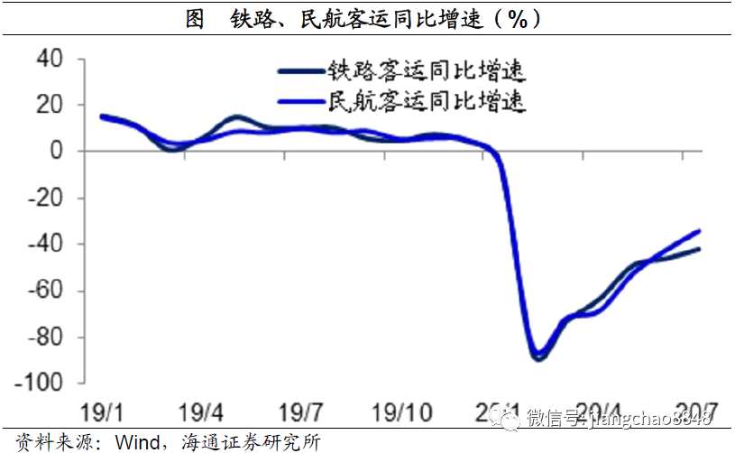 之后,遠途出行的鐵路和民航客流也開始恢復。今年2月份,中國民航和鐵路客運同比降幅均超過80%,到7月份的全國民航客運同比降幅縮窄至34.1%,鐵路客運同比降幅縮窄至40%左右。