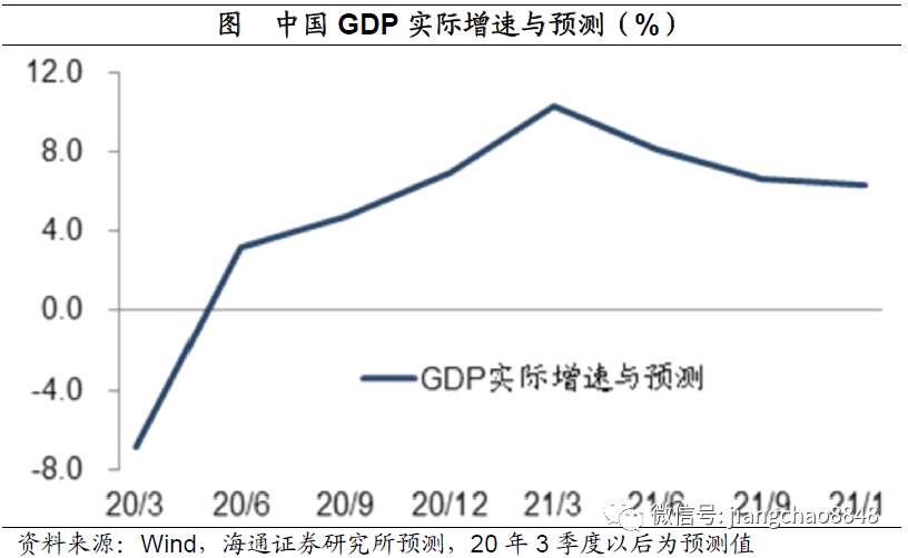 我們預測下半年GDP增速有望回升至6%左右,到21年上半年由于低基數(shù)原因,GDP增速或短期超過7%,到21年下半年GDP增速或重新回落至6%左右水平。
