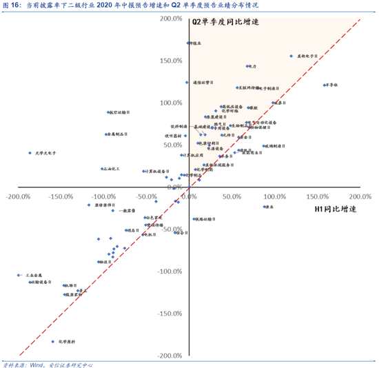 其中,創(chuàng)業(yè)板Q2單季度利潤(rùn)增速達(dá)到20%左右(主要受益于醫(yī)藥和電子行業(yè))。這初步驗(yàn)證了我們?cè)诖饲爸袌?bào)業(yè)績(jī)預(yù)告專(zhuān)題中提出的觀點(diǎn):“在全A(非金融石油石化)口徑下,中報(bào)整體業(yè)績(jī)?cè)鏊俨粌H環(huán)比改善,而且將大概率好于市場(chǎng)此前預(yù)期,不排除Q2單季度盈利出現(xiàn)小幅正增長(zhǎng),創(chuàng)業(yè)板單季度大概率大幅正增長(zhǎng)?!边@點(diǎn)也可以從二季度以來(lái)的工業(yè)企業(yè)數(shù)據(jù)得到側(cè)面印證。具體詳見(jiàn)《透視中報(bào)預(yù)告:增長(zhǎng)亮點(diǎn)、景氣指引與高質(zhì)量修復(fù)》。(需要提醒的是隨著后續(xù)披露,以上數(shù)據(jù)存在進(jìn)一步調(diào)整的可能。)