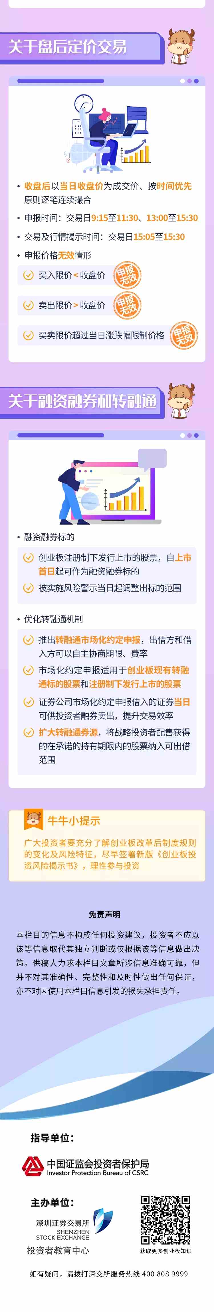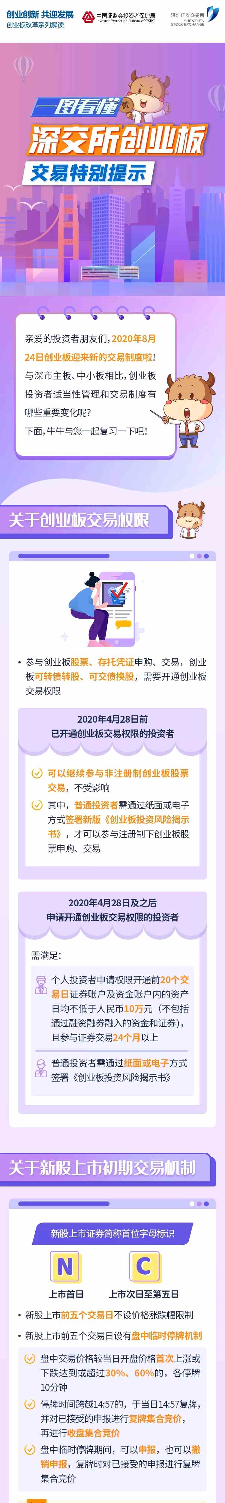 就創(chuàng)業(yè)板實(shí)施注冊(cè)制后的投資,證監(jiān)會(huì)有關(guān)負(fù)責(zé)人在創(chuàng)業(yè)板改革并試點(diǎn)注冊(cè)制答記者問中,特別提醒廣大投資者,新的交易機(jī)制將于創(chuàng)業(yè)板試點(diǎn)注冊(cè)制首批首發(fā)企業(yè)上市之日起施行,投資者在參與交易前,應(yīng)當(dāng)充分了解創(chuàng)業(yè)板交易規(guī)則的具體要求,充分了解新老交易機(jī)制的差異化安排。