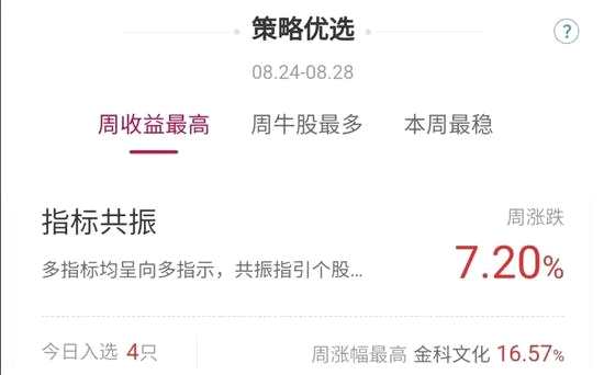 股指震蕩反彈的情況下,多指標(biāo)均呈向多指示的個股,走強概率更大。【金科文化(300459)、股吧】在8月24日入選“指標(biāo)共振”策略,周最高漲幅達16.57%,表現(xiàn)出眾。