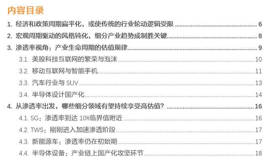 本篇報告,作為滲透率系列研究的總論篇,我們以“滲透率提升”為核心視角出發(fā),尋找能夠容忍高估值的細分行業(yè):