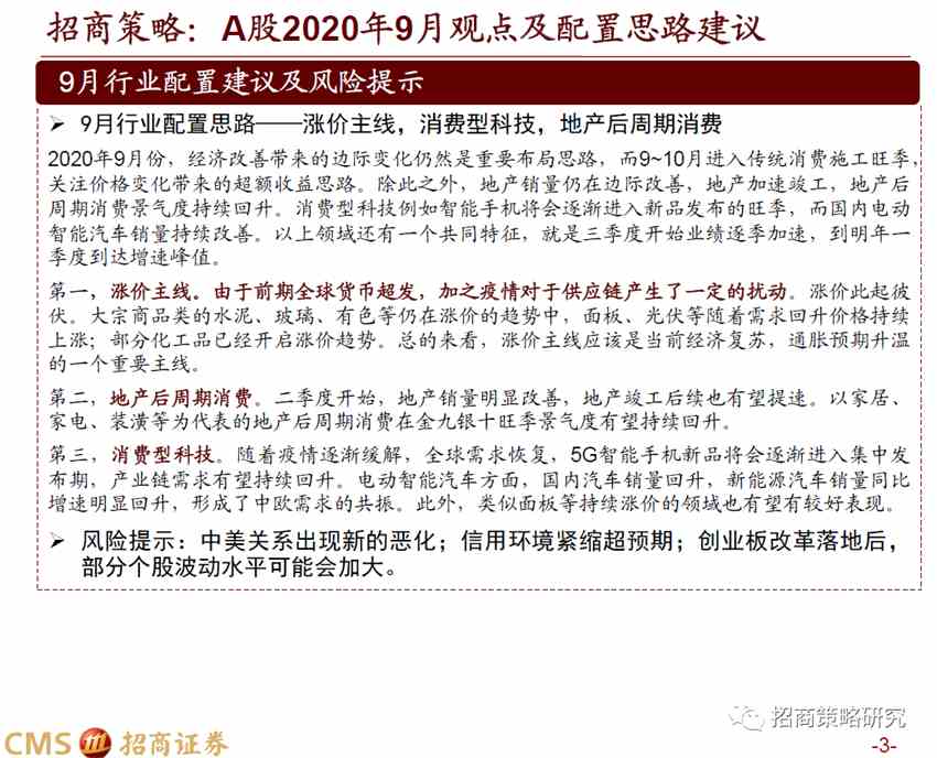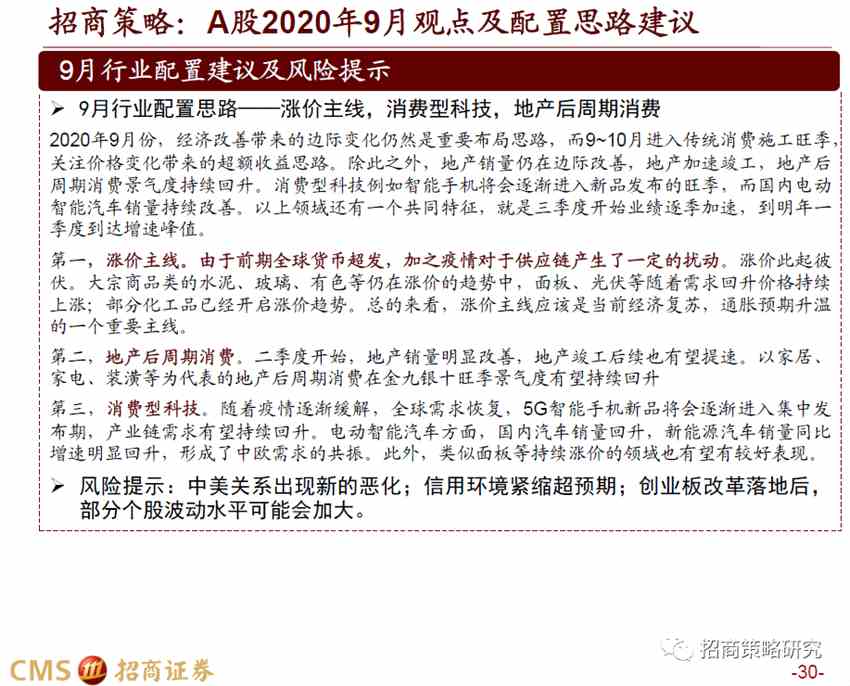 【招商策略】盈利修復(fù),蓄力上攻——A股2020年9月觀點及配置建議