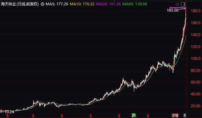 估值來看,食品飲料板塊,啤酒、白酒、調(diào)味品、乳品等均創(chuàng)2008年以來新高,海天味業(yè)等代表性公司的市盈率創(chuàng)歷史紀(jì)錄,海天味業(yè)已接近6000億。