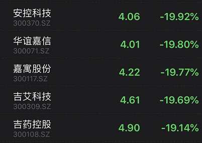 華誼嘉信(維權(quán))、嘉寓股份、吉艾科技、【吉藥控股(300108)、股吧】(維權(quán))等5元以下個股紛紛走低,跌超19%。