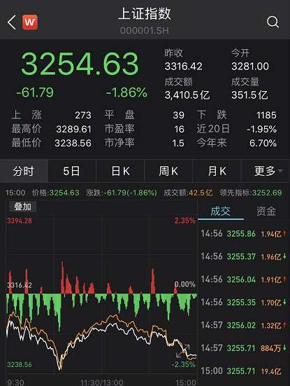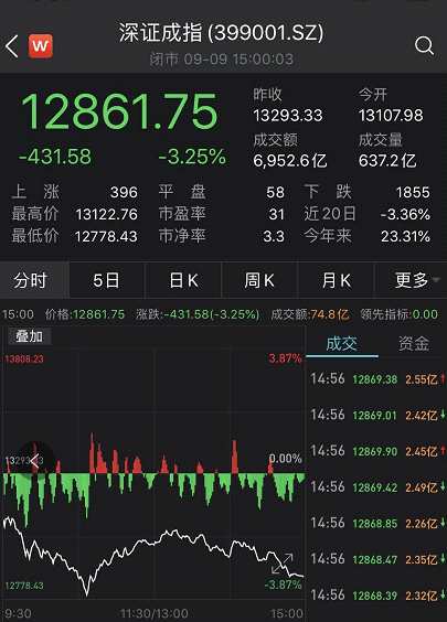 深證成指也收跌3.25%: