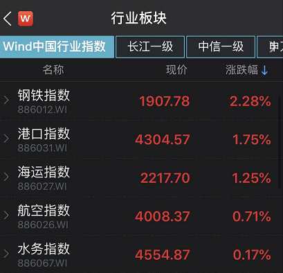 此外,港口指數(shù)、海運(yùn)指數(shù)、航空指數(shù)、水務(wù)指數(shù)也成為少數(shù)飄紅的行業(yè)板塊。
