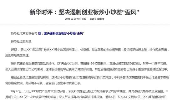 新華社:堅(jiān)決遏制創(chuàng)業(yè)板炒小炒差“歪風(fēng)”