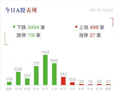 A股合計3494家股票下跌,119家跌停。上漲的只有499家。
