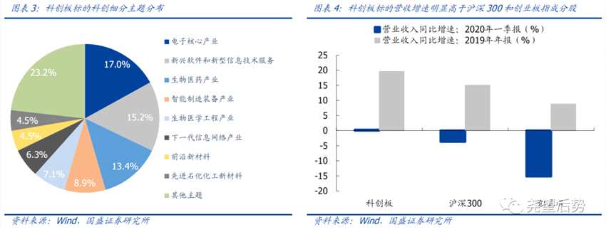 從細(xì)分產(chǎn)業(yè)及主題看,科創(chuàng)板聚焦長期最優(yōu)賽道、致力突破前沿科技的定位明晰。從科創(chuàng)主題分布看,新一代信息技術(shù)產(chǎn)業(yè)占比接近四成,伴隨5G時(shí)代來臨,新一輪信息技術(shù)革新帶動(dòng)產(chǎn)業(yè)高速發(fā)展,大量優(yōu)質(zhì)企業(yè)紛紛登陸科創(chuàng)。同時(shí),生物產(chǎn)業(yè)、高端裝備制造產(chǎn)業(yè)緊隨其后,占比分別達(dá)到23.8%和16.2%。此外,從細(xì)分主題看,電子核心產(chǎn)業(yè)、新興軟件和新型信息技術(shù)服務(wù)、生物醫(yī)藥產(chǎn)業(yè)占比最高,分別達(dá)到17.0%、15.2%和13.4%。