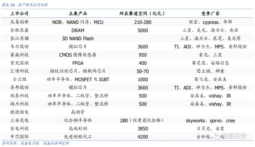同時(shí),隨著美國對(duì)華為制裁的升級(jí),國內(nèi)半導(dǎo)體產(chǎn)業(yè)格局將迎來重構(gòu),應(yīng)重視國產(chǎn)替代的機(jī)遇。在國產(chǎn)替代加速及新一輪創(chuàng)新周期引領(lǐng)下,研發(fā)轉(zhuǎn)換效率提升的 A 股龍頭公司有望繼續(xù)引領(lǐng)全球高增長,2020 年可以重點(diǎn)關(guān)注 CIS、射頻、存儲(chǔ)、模擬等國產(chǎn)化深水區(qū)。
