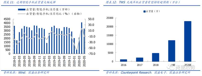 TWS無線耳機(jī)將維持高增長。近期各大電商平臺(tái)對(duì)TWS耳機(jī)進(jìn)行了大力促銷以拉動(dòng)整體需求,未來出貨量有望繼續(xù)超預(yù)期。根據(jù)Counterpoint Research統(tǒng)計(jì),TWS無線耳機(jī)的市場(chǎng)滲透率僅為15%,滲透率較低,2020年TWS無線耳機(jī)的出貨量將達(dá)到2.3億副,相對(duì)于2019年仍有翻倍的空間,市場(chǎng)前景廣闊。