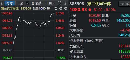 近段時間以來,有望寫入“十四五”規(guī)劃的預(yù)期板塊,如第三代半導(dǎo)體、光伏、風(fēng)電等在市場上輪番表現(xiàn)。其中,此前有所表現(xiàn)后進入回調(diào)的第三代半導(dǎo)體今日再度崛起,板塊漲幅竟達8.1%。