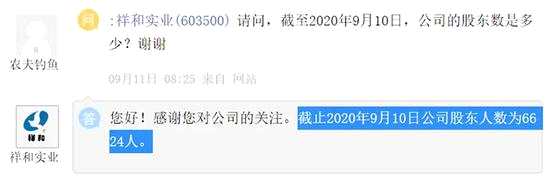 今日早間,祥和實業(yè)在上證e互動平臺回復提問時透露,截至9月10日,公司股東人數(shù)為6624人,與8月31日公司股東人數(shù)6273人相比微增了5.6%。
