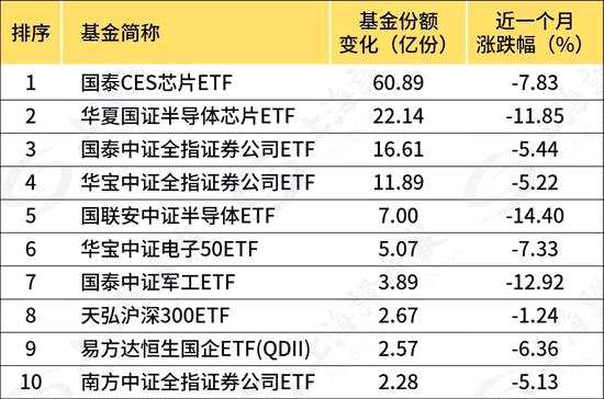 其中,國泰CES半導(dǎo)體芯片ETF9月份額增加了60.89億份,雖然國泰CES半導(dǎo)體芯片ETF份額增長主要為其在9月9日進行拆分所致,但該ETF9月以來的份額仍出現(xiàn)明顯增長;華夏國證半導(dǎo)體芯片ETF份額增加了22.14億份,國聯(lián)安中證全指半導(dǎo)體ETF份額增加7億份。