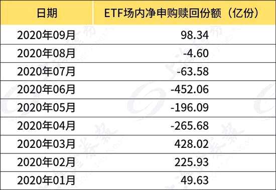 數(shù)據(jù)顯示,9月以來截至9月16日,滬深ETF場內(nèi)凈申購份額為98.34億份,其中上證ETF和深證ETF分別獲得78.23億份、20.11億份凈申購。值得注意的是,ETF從今年4月份開始每月均呈現(xiàn)凈贖回,而9月份的ETF凈申購份額為近半年來首度轉(zhuǎn)正。