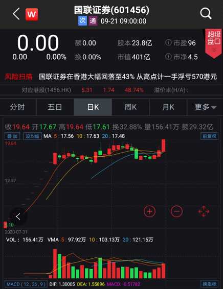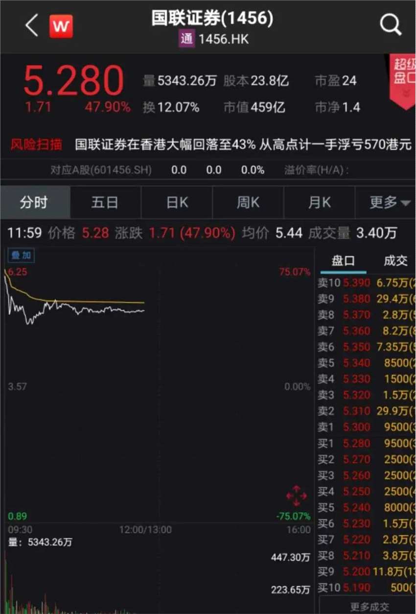 盡管當天,國聯(lián)證券和國金證券A股正式停牌;但國聯(lián)證券H股卻并未停牌。9月21日早間,國聯(lián)證券港股開盤一度漲超75%以上,報6.50港元,創(chuàng)下股價新高。隨后股價漲幅略有收窄。