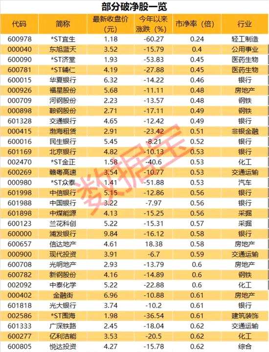 最新破凈股名單來了!市凈率最低僅有0.24倍,這個行業(yè)成破凈高發(fā)地