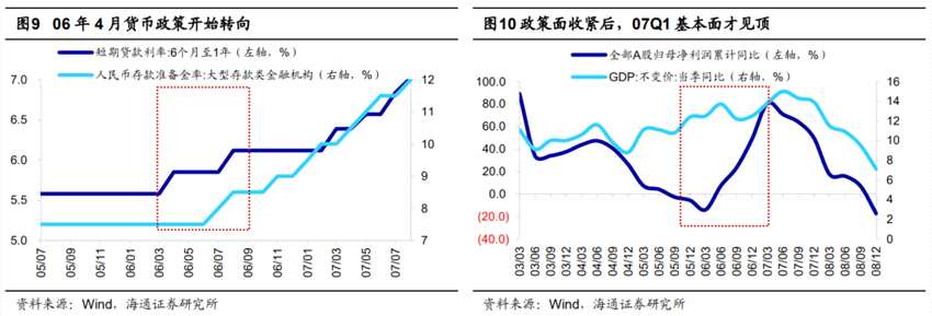 市場最近2-3月的盤整類似06年5-8月。今年7月以來市場進(jìn)入了震蕩盤整行情,本質(zhì)上還是因為經(jīng)濟(jì)弱復(fù)蘇下貨幣政策微調(diào),市場擔(dān)憂未來基本面的復(fù)蘇能否持續(xù)以及貨幣政策會何時真正收緊?;久嫔?,8月工業(yè)增加值當(dāng)月同比5.6%,已恢復(fù)至疫情前的水平;政策面上,隨著基本面的逐漸修復(fù),5月起貨幣政策開始微調(diào),目前R007與十年期國債利率均已從5月低點(diǎn)恢復(fù)至疫情前的水平。當(dāng)前市場的震蕩行情及對應(yīng)的宏觀背景與06年5-8月十分相似。06年的股市是一個全年大幅上漲的牛市,但是在5-8月這三個月大盤整體橫盤,背后的原因也是投資者擔(dān)憂政策轉(zhuǎn)向、基本面改善不可持續(xù)?;久嫔?,工業(yè)企業(yè)利潤累計同比增速從05/04的16%一路上升至06/05的25%,全部A股歸母凈利潤累計同比增速從16Q1見底-14%后逐步回升至06Q2的7%。隨著經(jīng)濟(jì)的逐漸恢復(fù),政策也開始收緊:06年4月28日,央行將金融機(jī)構(gòu)一年期貸款基準(zhǔn)利率由5.58%上調(diào)至5.85%;4月27日、5月18日、6月13日和8月15日央行對商業(yè)銀行發(fā)放貸款做出4次窗口指導(dǎo);6月16日、7月21日央行兩次上調(diào)存款準(zhǔn)備金率。貨幣政策的收緊使得投資者對當(dāng)時基本面回升的持續(xù)性產(chǎn)生擔(dān)憂,股市也由前期的走高轉(zhuǎn)向橫盤震蕩3個月。站在整個牛市大的周期來看,06年1月開始市場進(jìn)入了05/6-07/10牛市的3浪上漲階段,3浪上漲一直延續(xù)到07年3月,上證綜指從1000點(diǎn)左右一直漲到3000點(diǎn)左右,因為基本面回升一直延續(xù)到07Q1,全部A股歸母凈利潤累計同比增速在07Q1見頂81%,工業(yè)企業(yè)利潤累計同比增速在07/02見頂44%。這次和06年中較為類似,我們認(rèn)為目前市場也處在牛市3浪中,由資金面+基本面雙輪驅(qū)動。我們在前期周報《流動性變了嗎?-20200816》中指出觀察宏觀流動性“價”的指標(biāo)除了看R007和國債利率,還要看包括一般貸款加權(quán)平均利率、LPR利率、理財及信托利率等在內(nèi)的其他廣譜利率,這些指標(biāo)目前依舊保持低位,因此宏觀流動性并未明顯收緊。基本面上,庫存周期和政策推動因素下,我們預(yù)計Q3/Q4單季凈利潤同比增速有望分別達(dá)13%、20%,全年同比有望達(dá)到0-5%。因此整體看我們認(rèn)為兩大驅(qū)動因素不變的情況下,牛市3浪的上漲趨勢并未改變。