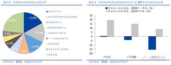 從細分產(chǎn)業(yè)及主題看,科創(chuàng)板聚焦長期最優(yōu)賽道、致力突破前沿科技的定位明晰。從科創(chuàng)主題分布看,新一代信息技術(shù)產(chǎn)業(yè)占比接近四成,伴隨5G時代來臨,新一輪信息技術(shù)革新帶動產(chǎn)業(yè)高速發(fā)展,大量優(yōu)質(zhì)企業(yè)紛紛登陸科創(chuàng)。同時,生物產(chǎn)業(yè)、高端裝備制造產(chǎn)業(yè)緊隨其后,占比分別達到23.8%和16.2%。此外,從細分主題看,電子核心產(chǎn)業(yè)、新興軟件和新型信息技術(shù)服務(wù)、生物醫(yī)藥產(chǎn)業(yè)占比最高,分別達到17.0%、15.2%和13.4%。