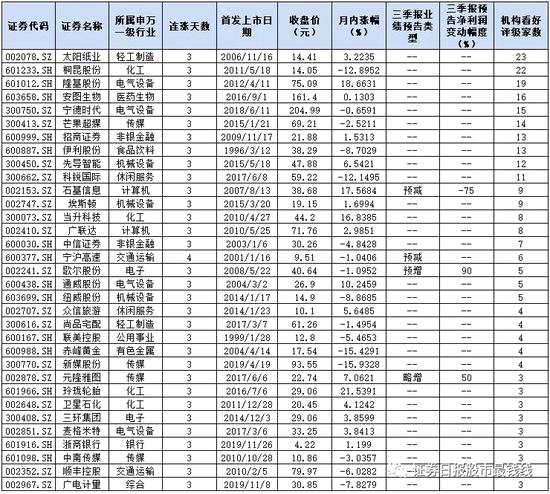 表:近1個(gè)月內(nèi)機(jī)構(gòu)看好評(píng)級(jí)家數(shù)居前的連漲股一覽