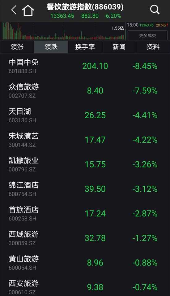 或因假日結(jié)束利好兌現(xiàn),今日早盤餐飲及旅游、免稅板塊雙雙逆勢下跌,板塊內(nèi)中國中免、眾信旅游及宋城演藝跌幅均超過5%,其中免稅龍頭中國中免跌幅超過8%,盤中更是一度跌停;而免稅概念的【南寧百貨(600712)、股吧】、海印股份(維權)等漲幅均超過大盤。