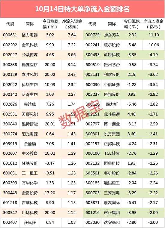 65股大單資金流出超億元。京東方A、歌爾股份流出資金超10億元,此外,藍(lán)思科技資金流出居第三位,凈流出4.19億元,上述三股均為蘋(píng)果概念股。昨日晚間,蘋(píng)果正式發(fā)布iPhone 12,但沒(méi)有給市場(chǎng)太多驚喜,導(dǎo)致昨日蘋(píng)果股價(jià)大跌,今日A股蘋(píng)果產(chǎn)業(yè)鏈個(gè)股普跌,海能實(shí)業(yè)大跌近10%,環(huán)旭電子、鵬鼎控股、歌爾股份、【橫店?yáng)|磁(002056)、股吧】、田中精機(jī)等個(gè)股均跌超5%。資金面上,聞泰科技、歐菲光、立訊精密等資金流出均在億元以上,東山精密、領(lǐng)益智造、長(zhǎng)信科技等流出超9000萬(wàn)元。