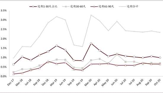 圖表: 信用卡ABS逾期率6月見頂后持續(xù)回落,預(yù)示銀行信用成本即將見頂回落