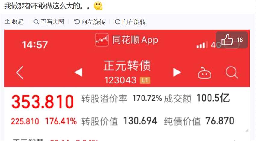 對(duì)于正元轉(zhuǎn)債的表現(xiàn),投資者直呼可怕。