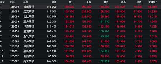 沒(méi)能延續(xù)前日的普漲走勢(shì),10月23日,可轉(zhuǎn)債明顯出現(xiàn)分化。智能轉(zhuǎn)債盤(pán)中直線(xiàn)拉升一度漲逾100%,收盤(pán)以48%漲幅報(bào)收;寶萊轉(zhuǎn)債、鈞達(dá)轉(zhuǎn)債、三力轉(zhuǎn)債漲幅均超10%,僅60只可轉(zhuǎn)債收漲;另一方面,可轉(zhuǎn)債尾盤(pán)大幅跳水,萬(wàn)里轉(zhuǎn)債、九州轉(zhuǎn)債、哈爾轉(zhuǎn)債跌幅超20%觸發(fā)臨停,24只可轉(zhuǎn)債跌幅超過(guò)10%,249只可轉(zhuǎn)債最終收跌。