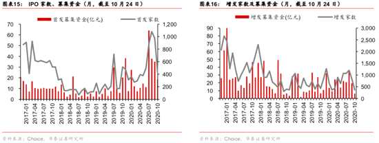 上周北向資金凈流出140億,連續(xù)7日凈流出;上周新成立股票+偏股型基金361億份,處于年內(nèi)偏高位水平;上周融資凈買入54億,兩融成交占比8.6%,均環(huán)比下滑明顯;上周產(chǎn)業(yè)資本凈減持113億,減持規(guī)模環(huán)比擴(kuò)大。海外疫情(美國日增病例創(chuàng)新高)、爭議大選(拜登民調(diào)優(yōu)勢從10%降至8%)、財政懸崖(財政紓困難產(chǎn))三大風(fēng)險短期或繼續(xù)導(dǎo)致外資波動,而高位AH溢價亦制約外資流入幅度;據(jù)Bloomberg,螞蟻集團(tuán)計劃融資350億美元,對應(yīng)逾200億人民幣A股打新規(guī)模,短期資金面不算寬裕。