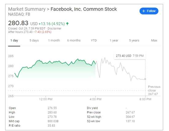 Facebook三季度營收214.7億美元,同比增長22%,高于市場預期的198.4億美元。三季度每股利潤2.71美元,上年同期為2.12美元,高于市場預期的1.91美元。