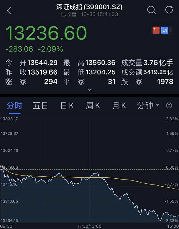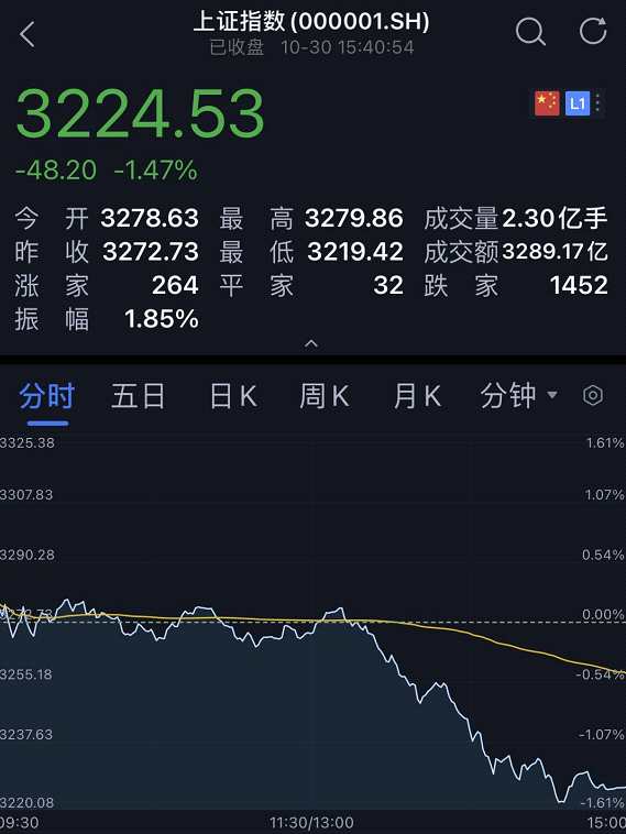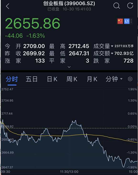 截至收盤,滬指大跌1.47%報3224.53點(diǎn),深成指跌2.09%,創(chuàng)業(yè)板指跌1.63%,創(chuàng)業(yè)板綜指跌2.62%。