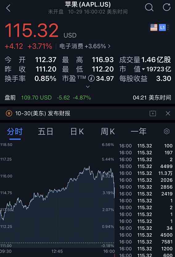 蘋果亦在昨晚發(fā)布季報,市場本來對科技巨頭的財報充滿期待,盤中蘋果一度漲近5%,但盤后發(fā)布財報后,“劇情”反轉(zhuǎn)了。