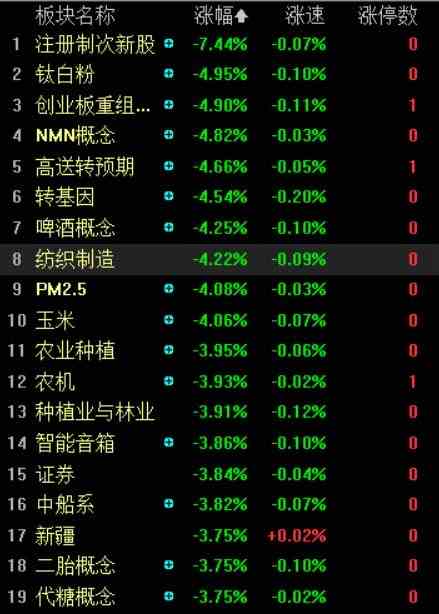 盤面上,板塊僅半導(dǎo)體、汽車整車板塊收紅,注冊制次新、啤酒、證券等板塊跌幅居前。