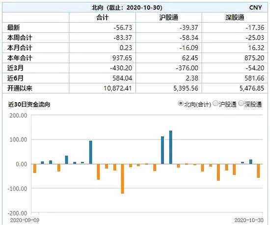 10月30日,在外圍市場擾動下,A股午后變臉,三大股指集體下挫,北向資金全天凈流出超56億元。