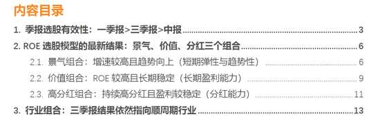 ROE選股模型的最新結(jié)果:景氣、價值、分紅三個組合
