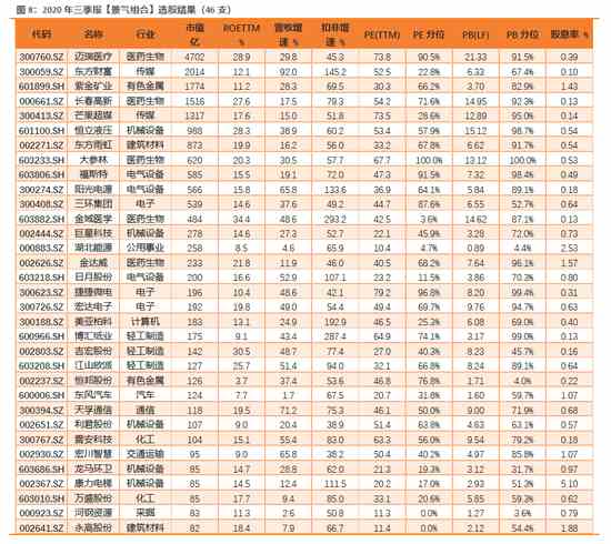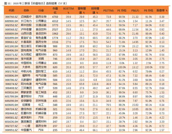 本期(三季報)的選股數(shù)量較多(疫情后業(yè)績普遍性改善,行業(yè)分布也較均勻),我們沒再加入其他限制指標(biāo),以原有選股結(jié)果呈現(xiàn)。