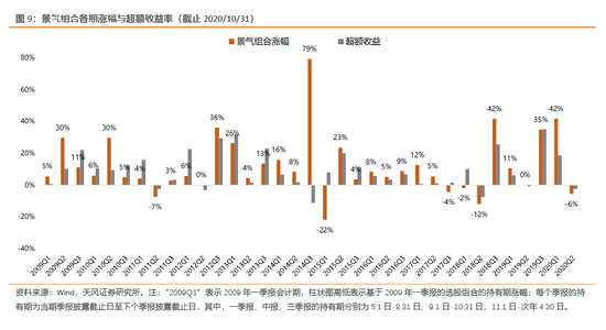 景氣組合:09年以來勝率為83%,一季報、中報、三季報勝率分別為100%、58%、91%。
