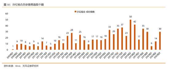 ?。?)高分紅組合:持續(xù)高分紅且盈利較穩(wěn)定(本期選股結(jié)果30支)2009年至今,分紅組合的累計收益率1241%,年化收益率25.7%,超額收益率20.8%;相比滬深300的勝率為80%。
