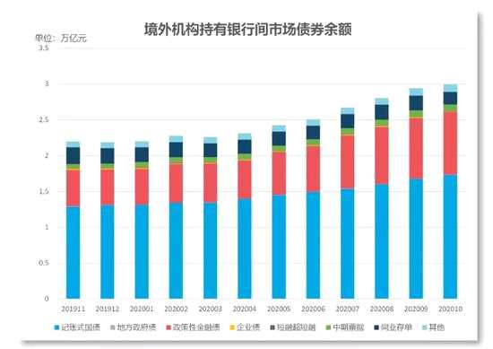 2019年12月,境外機(jī)構(gòu)持有的中國債券規(guī)模為21877億元,據(jù)此計(jì)算,今年前10個月,境外機(jī)構(gòu)持有的中國債券規(guī)模凈增加了超過8000億元。