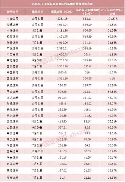 另外幾家頭部券商的新增借款規(guī)模也同樣引人注意。海通證券前10個月新增借款金額為586.19億元,居于行業(yè)第二位,占上年末凈資產(chǎn)的比例為41.54%。截至10月底公司借款金額為4011.94億元。