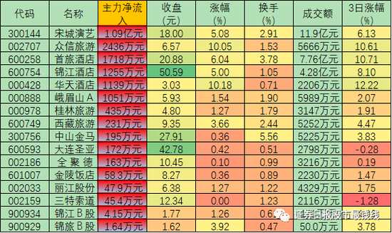 表:周二大單凈流入旅游酒店股市場(chǎng)表現(xiàn)一覽