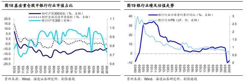 此外,重視銀行、保險(xiǎn)等低估的后周期板塊。一方面,宏觀經(jīng)濟(jì)數(shù)據(jù)回升支持金融地產(chǎn)估值修復(fù),銀行是典型的后周期行業(yè),經(jīng)濟(jì)數(shù)據(jù)改善后銀行業(yè)績(jī)也將好轉(zhuǎn),資產(chǎn)質(zhì)量擔(dān)憂下降,PB將修復(fù),目前銀行業(yè)PB(LF)僅0.68倍,20Q3/Q2歸母凈利潤(rùn)累計(jì)同比增速分別為-7.7%/-9.4%,銀行股業(yè)績(jī)底已現(xiàn),估值盈利性價(jià)比較好。另一方面,四季度基于排名等因素,會(huì)出現(xiàn)資金博弈的現(xiàn)象,以大金融為代表的板塊低漲幅、低配置、低估值,歷史上看這些行業(yè)在四季度可能被資金追逐。