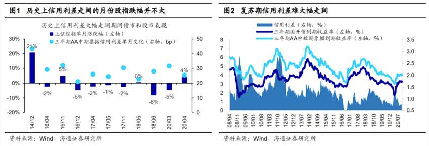 歷史經(jīng)驗(yàn)看,信用債違約對(duì)股市影響不大。近期信用債市場(chǎng)違約事件頻發(fā),10月23日華晨違約,11月10日永煤違約,11月11日聯(lián)合資信下調(diào)“16魏橋05”和“19魏橋01”債項(xiàng)信用評(píng)級(jí)至AA+,信用債市場(chǎng)遭遇三連擊。永煤的違約對(duì)市場(chǎng)沖擊尤其大,不僅因?yàn)閲?guó)企身份,還因?yàn)槠髽I(yè)自身資產(chǎn)并非很差,此前政府支持信號(hào)積極,近期還曾成功發(fā)行中票融資,因此在投資者樂觀情緒下,本次違約超出市場(chǎng)預(yù)期。其實(shí)從14年超日債首次違約后,信用債市場(chǎng)一直處在破除剛兌的過(guò)程中:15-16年產(chǎn)能過(guò)剩行業(yè)企業(yè)大面積虧損,自身稟賦弱、債務(wù)壓力大的主體如川煤集團(tuán)、東特鋼等出現(xiàn)了違約,16年上半年經(jīng)濟(jì)增速下行末期,部分企業(yè)盈利惡化,導(dǎo)致超日債、華鑫鋼鐵、中誠(chéng)信托在內(nèi)的多家主體也先后出現(xiàn)違約;17-18年金融去杠桿的大幕拉開,前期過(guò)渡加杠桿擴(kuò)規(guī)模主體開始暴露風(fēng)險(xiǎn),信用債市場(chǎng)迎來(lái)了大規(guī)模的民企違約潮。19年至今,方正集團(tuán)、包商銀行等違約時(shí)間對(duì)債市的也造成了巨大的波折。雖然每次違約潮的發(fā)生都沖擊著投資者的情緒,但是回顧歷史來(lái)看,近年違約潮所處月份股市的波動(dòng)并不大:過(guò)去5年單月AA級(jí)三年期中票相對(duì)國(guó)開債信用利差單月走闊20個(gè)bp的月份一共有11次,上證綜指當(dāng)月平均跌1%,中位數(shù)為跌2%。