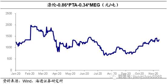 滌綸價(jià)差小幅壓縮。截至11月13日,滌綸-0.86*PTA-0.34*MEG價(jià)差為1340元/噸,環(huán)比上周下跌53元/噸,華東POY價(jià)格為5275元/噸,環(huán)比下跌25元/噸??傮w來(lái)看聚酯業(yè)務(wù)受益于下游紡織服裝需求回暖拉動(dòng)及原油價(jià)格上漲推動(dòng),盈利也有望逐步恢復(fù)。